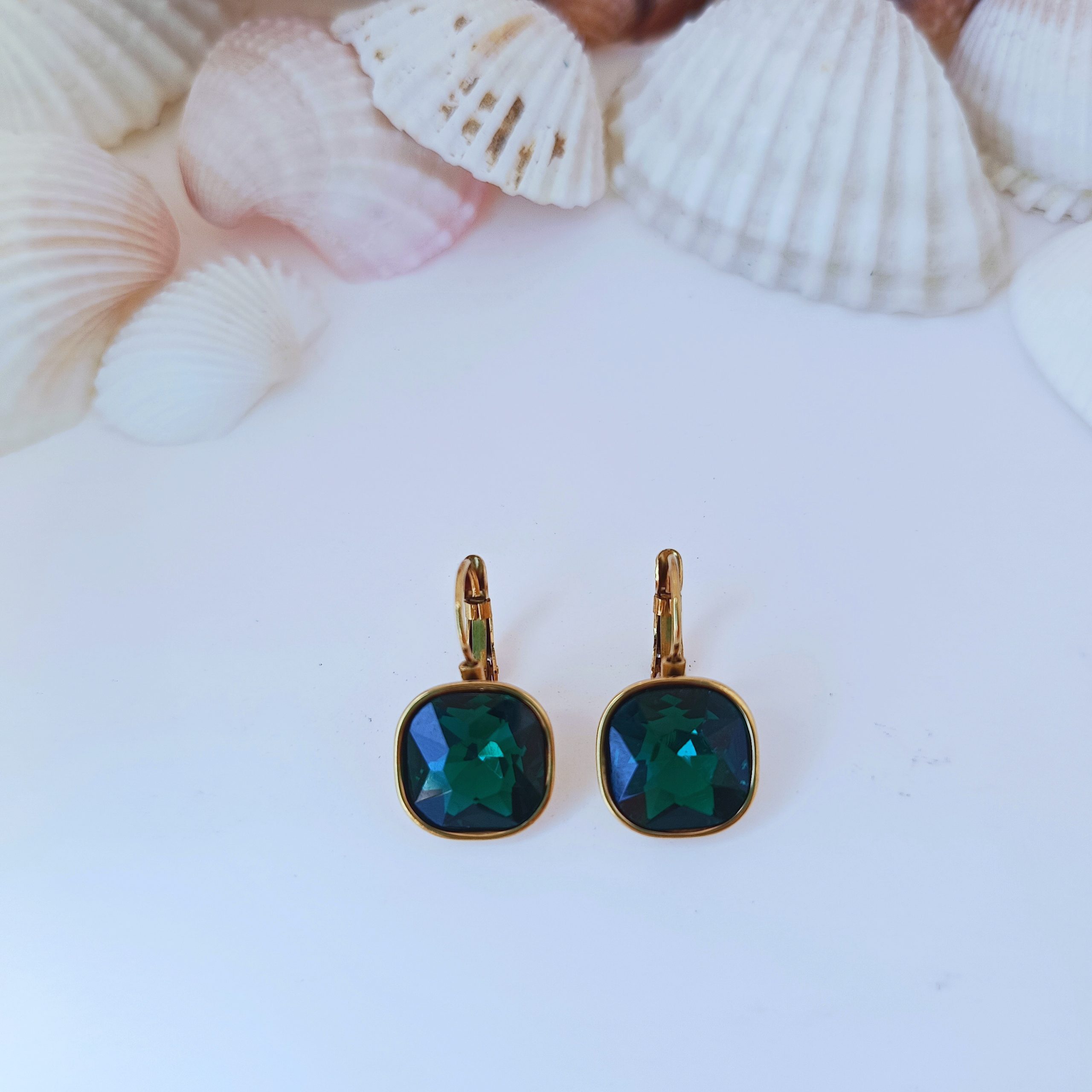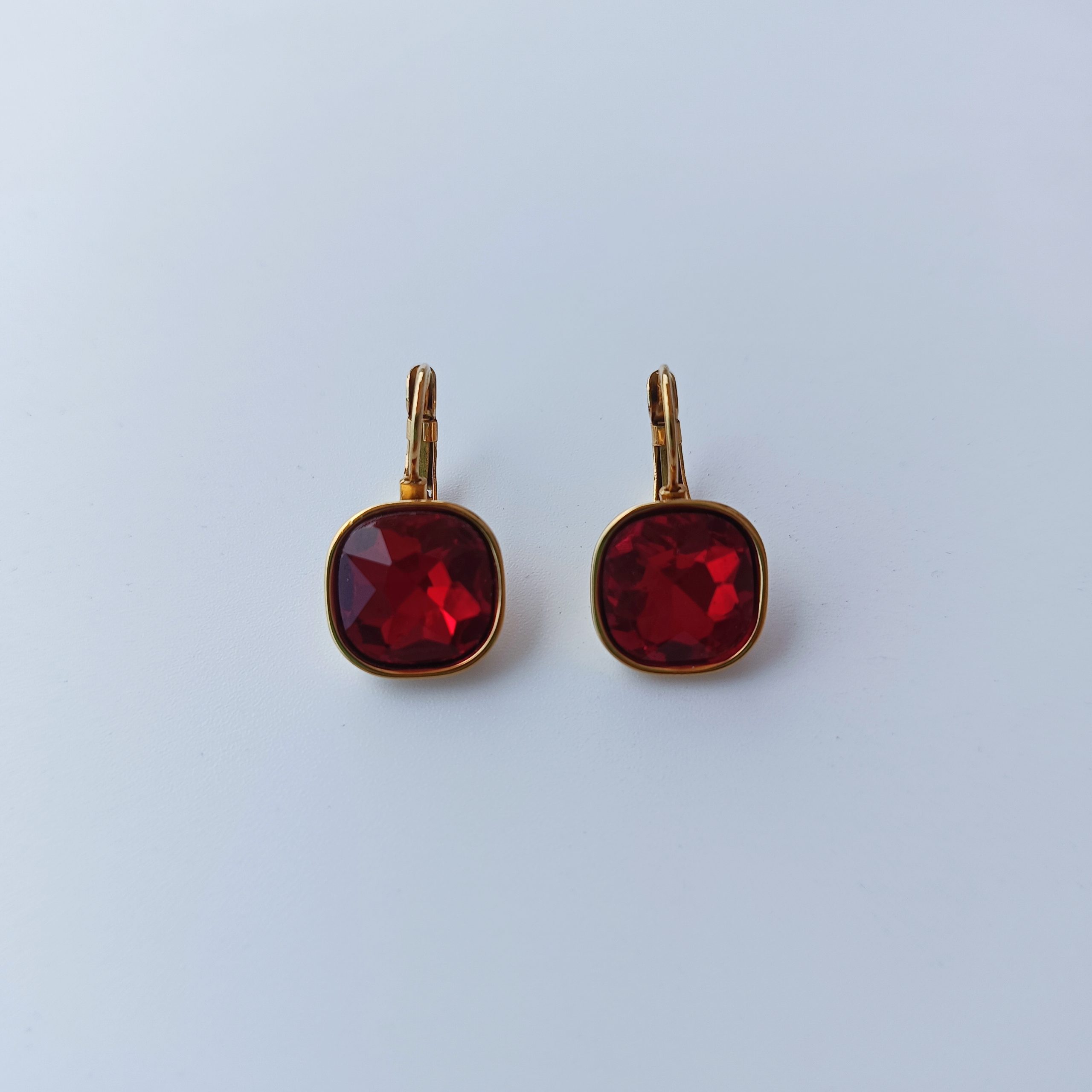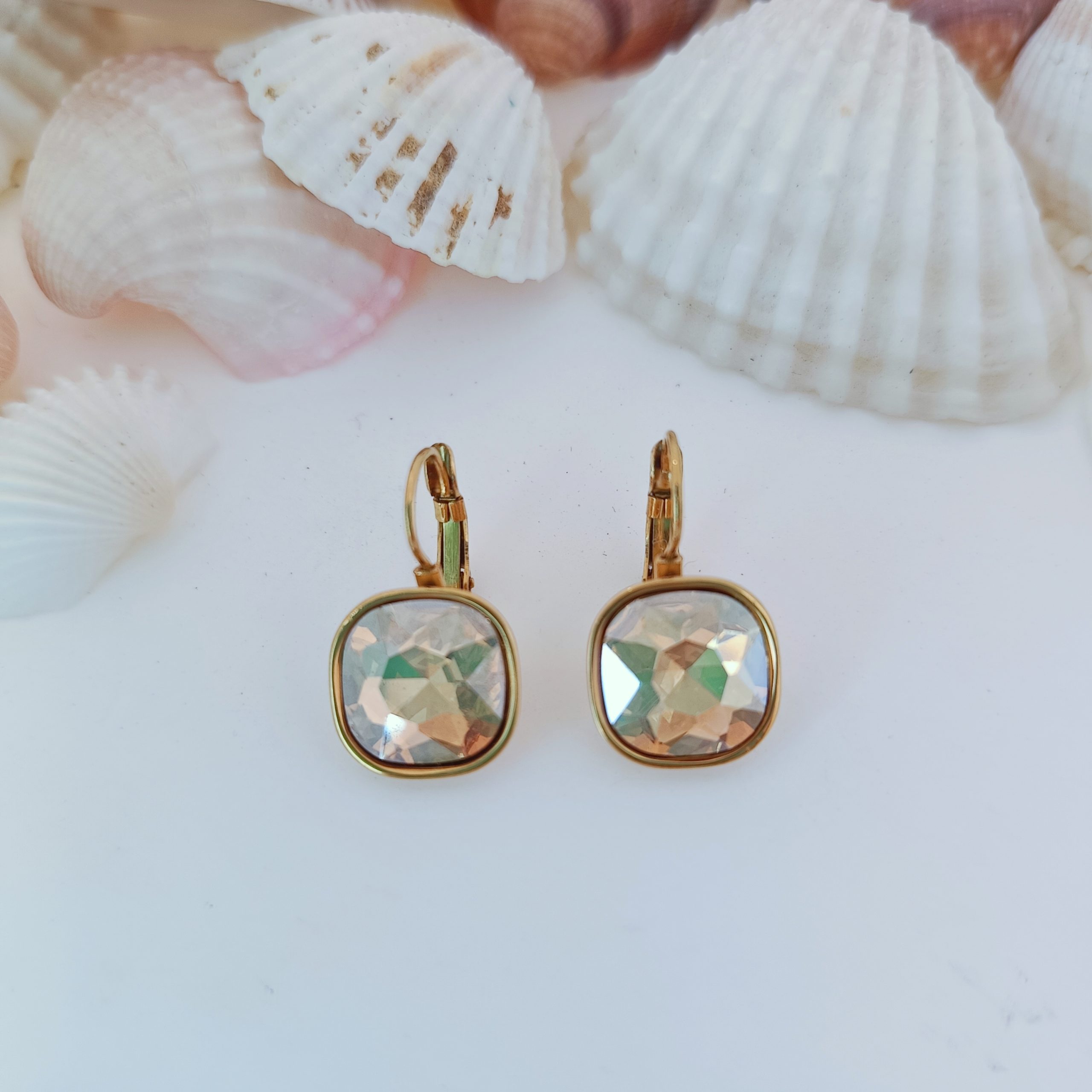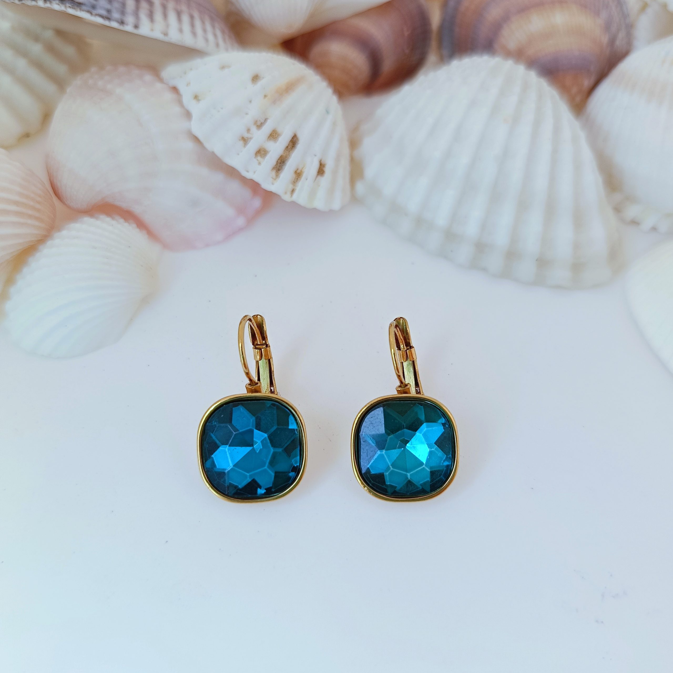 Κρεμαστά σκουλαρίκια από ανοξείδωτο χάλυβα με κρυστάλλινες πέτρες τύπου ζιργκόν. Διατίθεται σε 4 αποχρώσεις πετρών