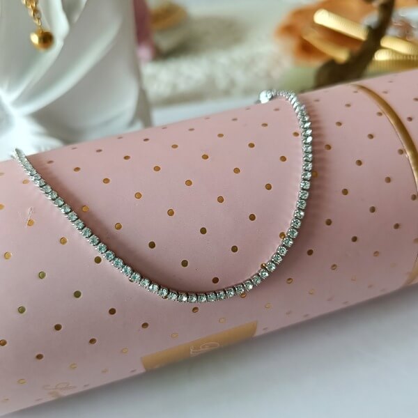 Αλυσίδα ατσάλινη, σε ασημί απόχρωση με ζιργκόν 2mm και με αλυσίδα προέκτασης για να εφαρμόζει σε διαφορετικά μεγέθη. Εξαιρετικά ανθεκτική.