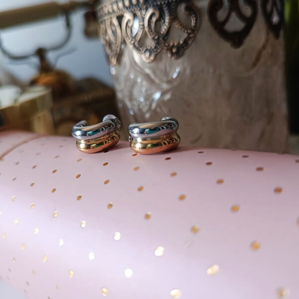 Σκουλαρίκια κρικάκια με καρφάκι , γυαλιστερό φινίρισμα, διπλά σε αποχρώσεις ασημί και χρυσό