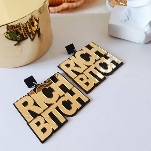 Oversized σκουλαρίκια με καρφάκι από plexiglass χρυσό καθρέφτη με μήνυμα.
