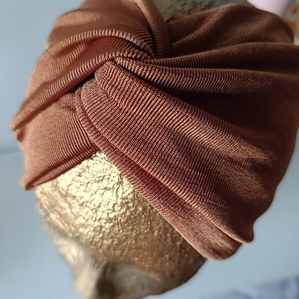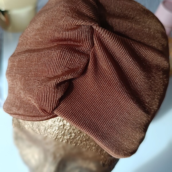Χειροποίητη φαρδιά κορδέλα από πολύ ελαστικό μπρονζέ ύφασμα. Όλες οι χειροποίητες κορδέλες μας χρησιμοποιούνται με δύο διαφορετικούς τρόπους, είτε με τη διχάλα μπροστά, είτε φέρνοντας το πίσω μέρος μπροστά έτσι ώστε να φαίνεται πιο φαρδιά και να δίνει την εικόνα τουρμπάν. Ένα μοναδικό και ξεχωριστό αξεσουάρ που προσδίδει μια πινελιά κομψότητας και προσωπικότητας σε κάθε εμφάνιση. Κατασκευασμένες με μεράκι και φαντασία, αυτές οι κορδέλες ξεφεύγουν από τα συνηθισμένα και προσφέρουν μια ευρεία γκάμα σχεδίων, υλικών και χρωμάτων. Κάθε χειροποίητη κορδέλα είναι ένα μοναδικό έργο τέχνης, φτιαγμένο με αγάπη και προσοχή στη λεπτομέρεια.