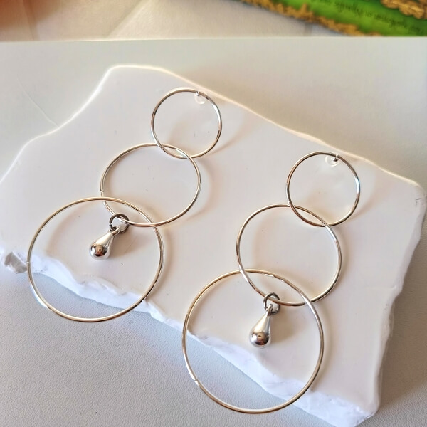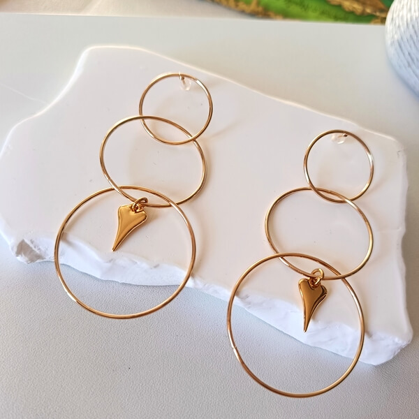 Γεωμετρικά σκουλαρίκια σ’ ένα απλό, μινιμαλιστικό σχέδιο. Αποτελούνται από λεπτούς, μεταλλικούς κρίκους σε διάφορα μεγέθη, δημιουργώντας μια ενδιαφέρουσα σύνθεση. Μινιμαλιστική κομψότητα και απλότητα, ευκολοφόρετα όλες τις ώρες της ημέρας!