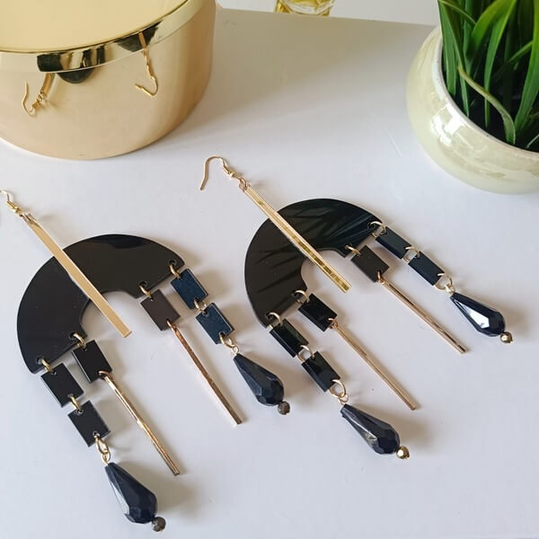 Χειροποίητα πλεξιγκλάς σκουλαρίκια με γατζάκι αποτελούμενα από συνδιασμό γεωμετρικών σχημάτων