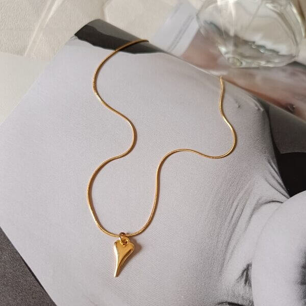 Ατσάλινο κολιέ με αλυσίδα λεπτή φίδι και μοτίφ μικρής ,διακριτικής καρδιάς