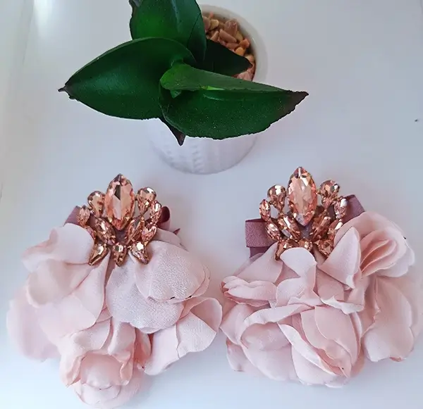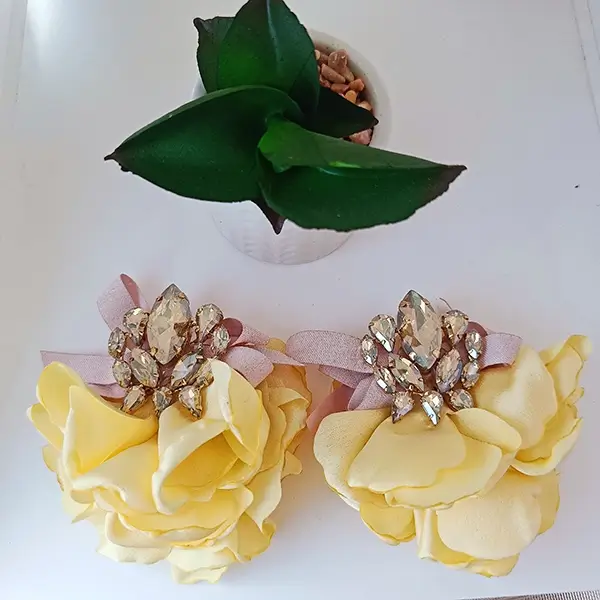 Σκουλαρίκια καρφωτά με εντυπωσιακές γιάλινες πέτρες στρας τοποθετημένες πάνω σε σύνθεση κομματιών από κρεπ ύφασμα..Αστραφτερό ,έντονο και συνάμα minimal σχέδιο ,καταλληλο για βραδυνές εμφανίσεις