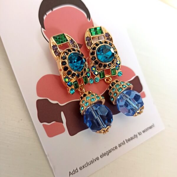 Σκουλαρίκια με καρφάκι από επιχρυσωμένο χαλκό διακοσμημένα με πολύχρωμες ζιργκόν πετρούλες