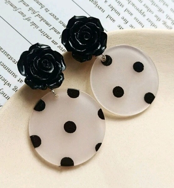 Σκουλαρίκια με καρφάκι από plexiglass σε ασπρόμαυρο πουά σχέδιο